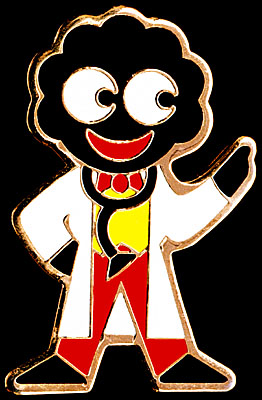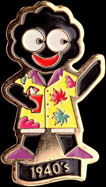 1920s Tin Golly Pre-war Essex Cricketer Pre-war Middlesex Cricketer Pre-war Surrey Cricketer Pre-war Jolly Golly Golfer Pre-war Footballer Bagpiper 1950s (Fattorini & Sons) Bagpiper 1950s (Plain Bagpipes - Gomm) Bagpiper 1950s (Green Pipes - Miller) Cricketer 1950s Cricketer 1950s (Miller) Cricketer 1950s (Marples & Beasley) Cricketer 1950s (Gomm - pointed bar) Footballer 1950s (Fattorini & Sons) Footballer 1950s (Miller White Football) Footballer 1950s (Reeves - No 'V' Neck) Footballer 1950s (Charles Davis) Footballer 1950s (Miller - Dark Brown Ball) Golfer 1950s Guitarist 1950s Hockey 1950s Hockey (Miller curly hair)1950s Lollipopman 1960s Scout 1950s Skater 1950s Skater 1950s (F&S - Large Mouth and V-neck touches chin) Skater (Miller curly hair) 1950s Skater (Gaunt Slightly curly hair) 1950s Standard 1950s AWG Standard 1950s Gaunt Standard 1950s (Black Bow Tie) Olympic Standard 1950s (Pointed Smile) Tennis Player 1950s Tennis Player 1950s (Marples & Beasley - Blue hands/red feet) Tennis Player (Miller curly hair) 1950s Propat Bagpiper (Gomm) 1970s Bagpiper (Fattorini) 1970s Cricketer 1970s Footballer 1970s Golfer 1970s Guitarist 1970s Hockey 1970s Lollipopman 1970s Motorcyclist 1970s Scout 1970s Skateboarder 1970s Skater 1970s Standard 1970s (Gomm) Standard 1970s (Fattotini) Tennis Player 1970s Standard Yellow Tin Badge 1976 Golly II - Castle Howard 1977 Golly I - Gomm Silver Balloon 1977 Ambulanceman 1980s Ambulanceman 1980s (Blue buttons on chest pockets) American Footballer 1980s American Footballer (Blue between legs) 1980s Astronaut 1980s Blue Astronaut 1980s Bagpiper 1980s Brownie 1980s Brownie 1980s (with Brown Patches) Butcher 1980s Canadian Mountie 1980s (Dark Hat) Canadian Mountie 1980s (Light Hat) Car Driver 1980s Commemorative 1930-80 Cowboy 1980s (Closed Circles) Cowboy 1980s (Open Circles) Cowboy 1980s (Very Open Circles) Cricketer 1980s (Large Ball) Cricketer 1980s (Small Ball) Cyclist 1980s (no bubble coat) Cyclist 1980s (with bubble coat) Darts Player 1980s Doctor 1980s Engine Driver 1980s Engine Driver (All yellow coupling) 1980s Fireman (Short Hose) 1980s Fireman (Long Hose) 1980s Fisherman 1980s Footballer 1980s (round white boots) Footballer 1980s (round black boots) Footballer 1980s (pointed black boots) Golfer (yellow club) 1980s Golfer (white club) 1980s Golfer (metal club) 1980s Guitarist 1980s Jogger (Square Foot) 1980s Jogger (Pointed Foot) 1980s Lollipopman 1980s (Shorter Pole) Lollipopman 1980s (Longer Pole) Milkman 1980s Motorcyclist (Dark Windscreen) 1980s Motorcyclist (Lighter Windscreen) 1980s Motorcyclist (Light Windscreen) 1980s Nurse (light blue) 1980s Nurse (dark blue) 1980s Policeman (Without Helmet Bobble) 1980s Policeman (With Helmet Bobble) 1980s Postman (Blue/Red Pocket) 1980s Postman (All Red Pocket) 1980s Racing Driver 1980s Sailor 1980s Snooker Player 1980s Standard 1980s Skier 1980s (No bubble coat) Skier 1980s (With bubble coat) Tennis Player 1980s (2 white spaces at top of racket/Silver Finish) Tennis Player 1980s (3 white spaces at top of racket/Gold Finish) Viota Baker 1980s Bank It 1982 HMS Crichton 1983 Golly Club 1985 Tin Golly Club Badge Cystic Fibrosis 1987 Lifeboatman 1988 1940s Footballer 1985 1940s Golfer 1985 1940s Guitarist 1985 1940s Hockey 1985 1940s Standard 1985 1940s Tennis Player 1985 Gold Viota Baker 1985 Plastic Golly 1980s (Small - orange/silver) Plastic Golly 1980s (Large - white) American Footballer 1990 American Footballer 1990 (Red between legs) Astronaut 1990 (eyes to right) Astronaut 1990 (eyes to left) Baseballer 1990 Brownie 1990 Cricketer 1990 Doctor 1990 Fireman 1990 Fisherman 1990 Mis-stamped Fisherman 1990 Footballer 1990 Jockey 1990 Juggler 1990 Keep Fit Golly 1990 McGolly (White Sporran) 1990 McGolly (Black Sporran) 1990 Nurse 1990 Policeman (White Shirt) 1990 Policeman (Blue Shirt) 1990 Racing Driver 1990 Skateboarder 1990 Skier 1990 Standard 1990 Surfer 1990 Tennis Player 1990 Tennis Player (Blue Sleeve Ends) 1990 Tennis Player (One White & One Blue Sleeve End) 1990 Mis-stamped Tennis Player 1990 Father Christmas 1990 Olympic Discus Thrower 1992 Olympic Gymnast 1992 Olympic Hurdler 1992 Olympic Tourch Bearer 1992 Air Hostess (orange red) [H] 1993 Air Hostess (deeper red) [H] 1993 Air Hostess (different bow) [V] 1993 Australian (Closed-toe sandals) [H] 1993 Australian (Open-toe sandals) [V] 1993 Australian (Black under hat) [V] 1993 Ballet Dancer (larger eyes/mouth) [H] 1993 Ballet Dancer (smaller eyes/mouth) [V] 1993 Chef (Thin) [H] 1993 Chef (Fat) [H] 1993 Chef (Skinny Legs) [V] 1993 Cyclist [H] 1993 Cyclist (Orange Jumper) [V] 1993 Cyclist (Small Eyes) [V] 1993 French Golly (No Knot in scarf) [H] 1993 French Golly (Knot in scarf) [V] 1993 Footballer (red mouth/blue ball) [V] 1993 Footballer (white mouth/black ball) [H] 1993 Footballer (red mouth/black ball) [H] 1993 Juggler [V] 1993 Juggler (Different eyes) [H] 1993 Karate (Thick Stripe) [H] 1993 Karate (Thin stripe) [V] 1993 Keep Fit (Deep Pinks) [V] 1993 Keep Fit (Pastel Pinks) [H] 1993 McGolly (Big Hat) [V] 1993 McGolly (Small Hat) [H] 1993 McGolly (Yellow Shoulder) [V] 1993 Nurse (Green Cross) [V] 1993 Nurse (Red Cross) [H] 1993 Pilot (Green Epaulettes) [H] 1993 Pilot (Red Epaulettes) [H] 1993 Policeman (Bigger Star) [V] 1993 Policeman (Smaller Star) [H] 1993 Racing Car (With spoiler detail left of head) [H] 1993/4 Racing Car (No spoiler detail left of head) [V] 1993/4 Rugby Player (Slim - Smaller Eyes) [H] 1993 Rugby Player (Slim - Larger Eyes) [V] 1993 Rugby Player (Broad) [H] 1993 Skier (Bigger Goggles) [V] 1993 Skier (Smaller Goggles) [H] 1993 Standard [V] 1993 Surfer (Darker Waves) [V] 1993 Surfer (Lighter Waves) [H] 1993 Swimmer [H] 1993 Swimmer (Different Waves) [V] 1993 Walker (Green Boots) [H] 1993 Walker (Brown & Green Boots) [V] 1993 New Golly Collectors Club 1994 Baby 1996 Clown 1996 Flamenco 1996 Mountie 1996 Pirate 1996 Artist 1996 Cheerleader 1996 DIY 1996 Eskimo (Grey Spear) 1996 Eskimo (Brown Spear) 1996 Eskimo (Black Spear) 199