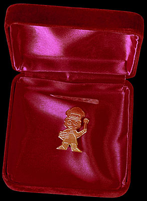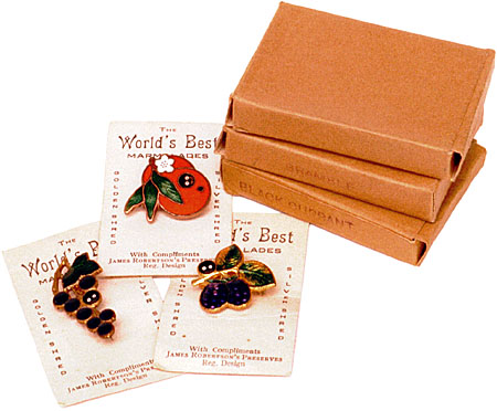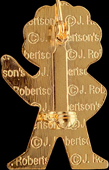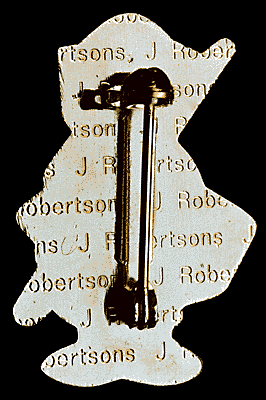 Issued with Robertson's approval by Jerry Loader to celebrate the opening of the Paisley Museum exhibition featuring some of his collection of Robertson's memorabilia. The brooch was issued in a 'World's Best' Presentation Box. The character depicted on the brooch is James Robertson.